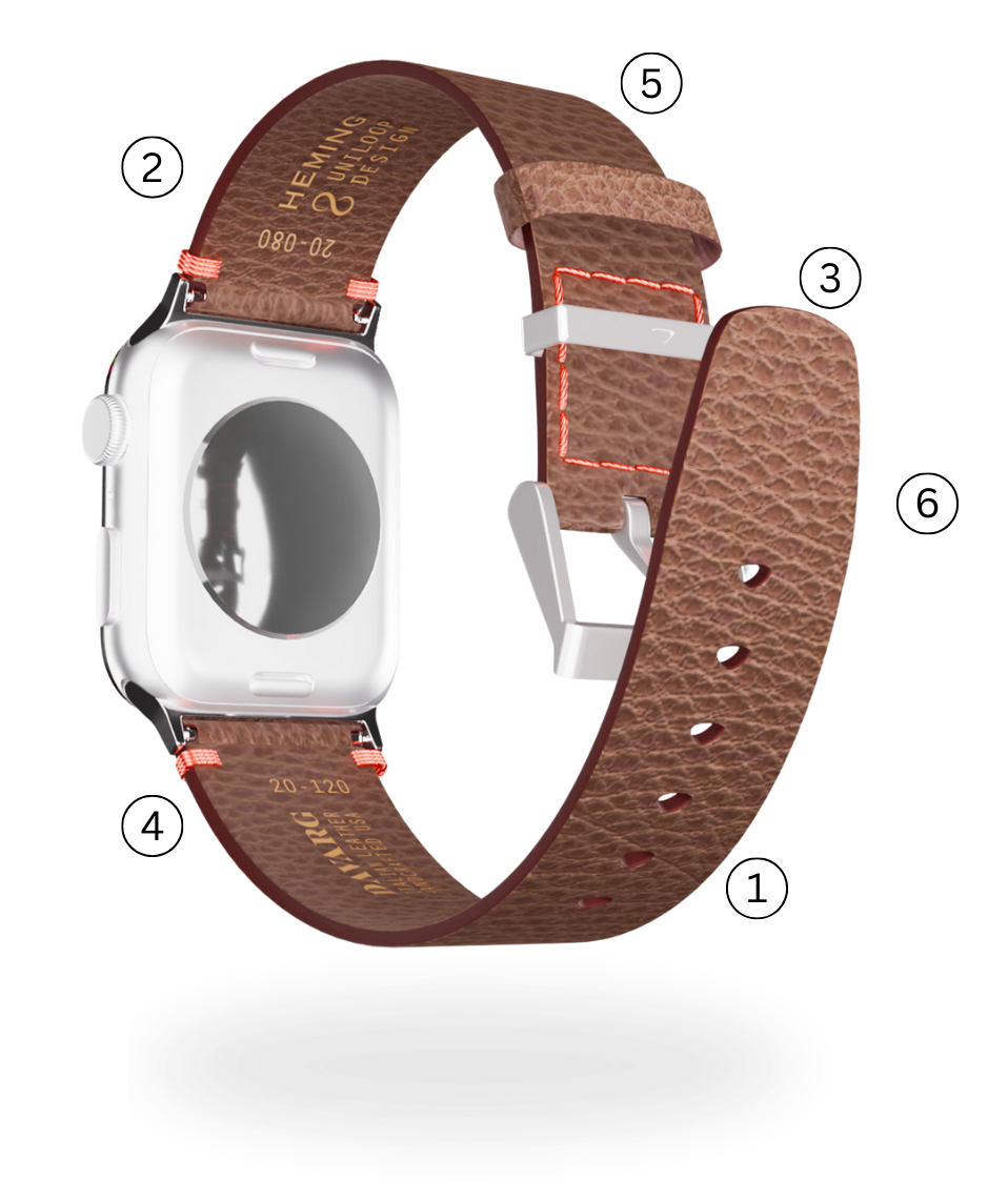 Another distinct feature of Heming watch straps is the fixed metal loop. Unlike traditional leather loops that weaken over time, the durable metal loop reinforces the most stressed part of the strap, ensuring long-lasting strength and reliability with daily wear.