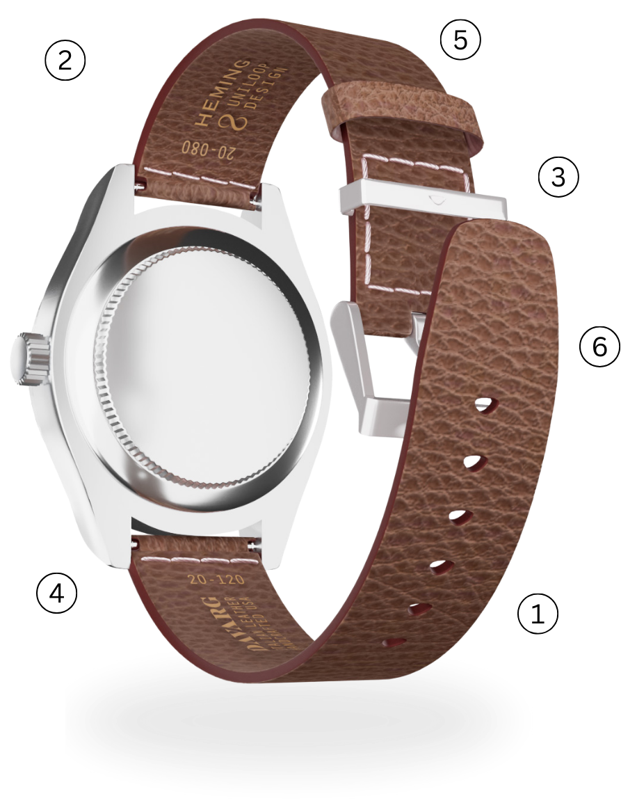 A distinct feature of Heming watch straps is the fixed metal loop. Unlike traditional leather loops that weaken over time, the durable metal loop reinforces the most stressed part of the strap, ensuring long-lasting strength and reliability with daily wear.