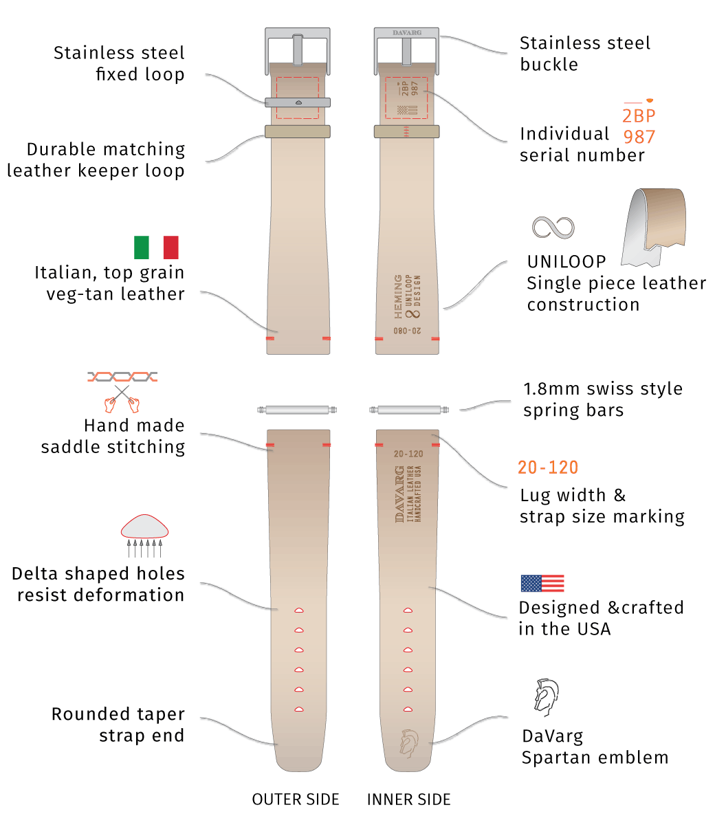 At DaVarg, we believe every wrist deserves a strap that fits flawlessly. That’s why we don’t make one-size-fits-all watch straps. Our carefully designed strap combinations feature precise strap lengths, ensuring a perfect fit for every wrist, avoiding excess strap tail ends.
